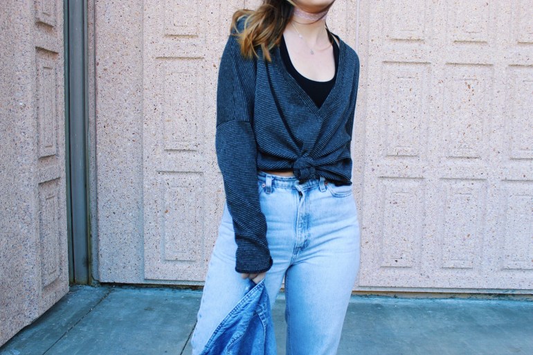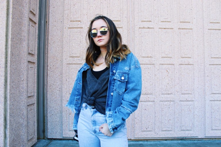 Denim on denim can be pretty adventurous for most people, and it’s a trend that kind of moves in and out of style. I simply just love this look in spring because it is a way I can brighten up my wardrobe without experimenting with very much color! The trick is to use different shades of denim. This keeps it looking a bit more modern and less like a set. Another major trick to keep in mind is to give the look a break by letting some skin show, whether that is the ankles by using cropped jeans, or wearing a crop top or cropped denim piece. That is what makes all the difference, and this trick can be applied for working with any pattern or monochromatic look! I paired my vintage Levis and cropped denim jacket with a black and white striped long sleeve. I tied it to show some skin, and rolled up the ankle of the jeans. I kept it simple with some low-cut, leather Vans slip-ons. To pick up the white in the shirt a bit more, I also added a white lace choker. I hope you enjoyed this look! Thank you so much, and please feel free to like and share!