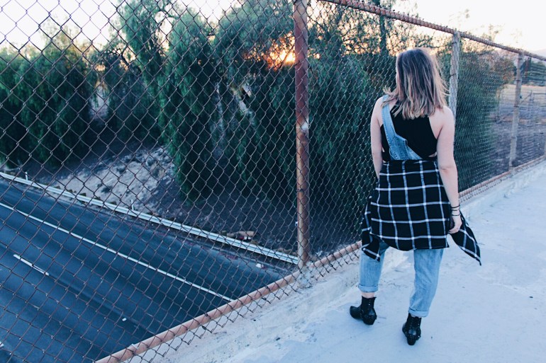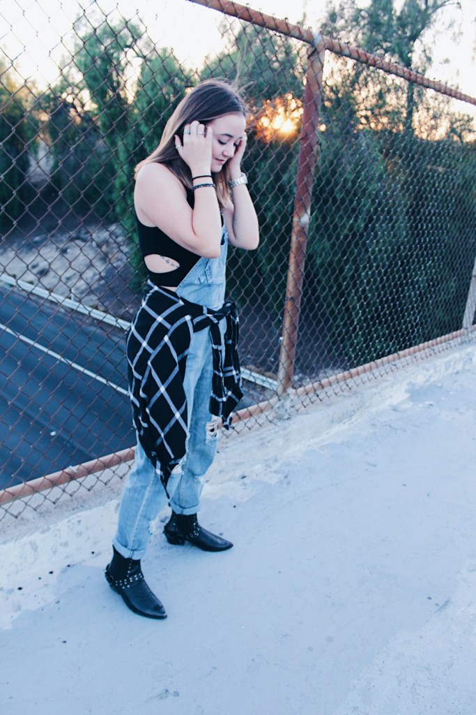 Overalls are one of my favorite pieces around the summer because they are comfortable and versatile. In fact, one of my first blog posts from last summer also included overall shorts. They are so much fun to work with. Typically, I keep them casual with a cropped tank underneath. I decided on this specific one because of the cut outs on the side. I tied a flannel around the waist to break it up, and act as a belt, since these overalls are actually pretty big on me. Added some edge (my favorite) with these amazing booties from Windsor. The chained detail makes them look very expensive. Finally, I threw on a leather jacket because I am perpetually cold. I hope you liked this look and the amazing photos Max took! I had such a hard time narrowing these down so that is why there is quite a few…
