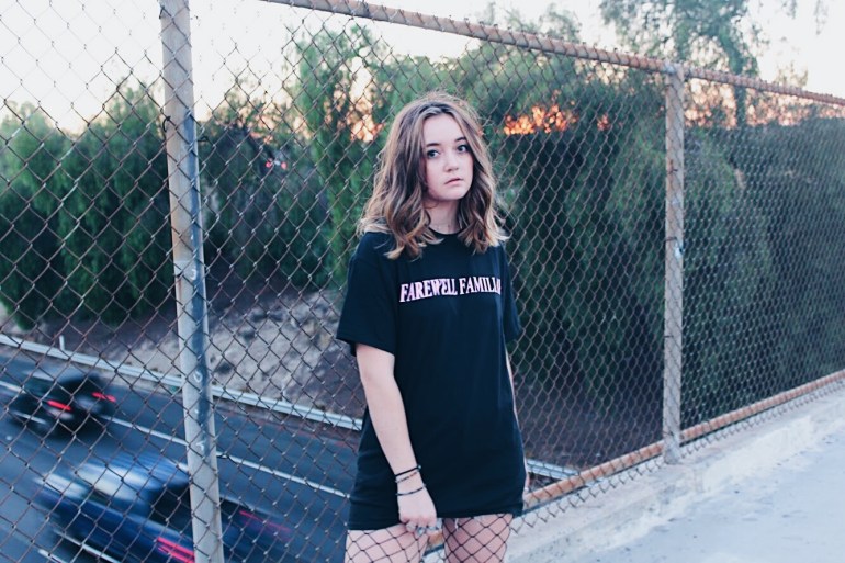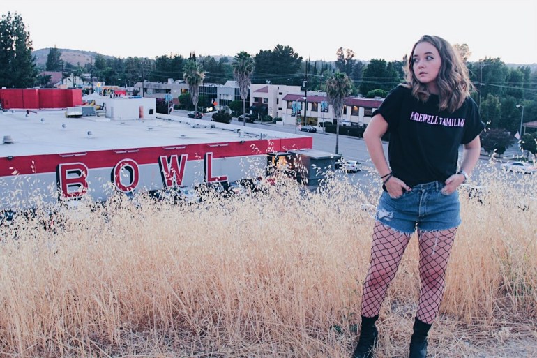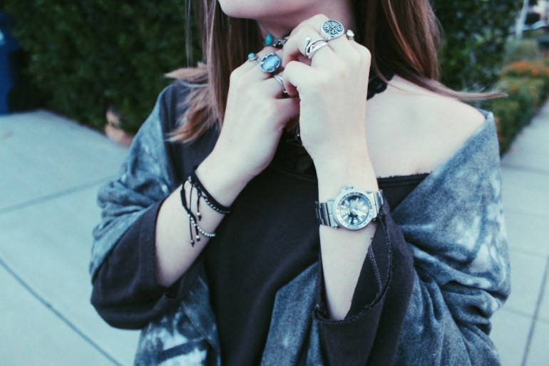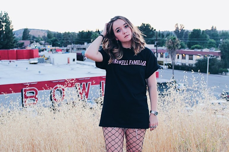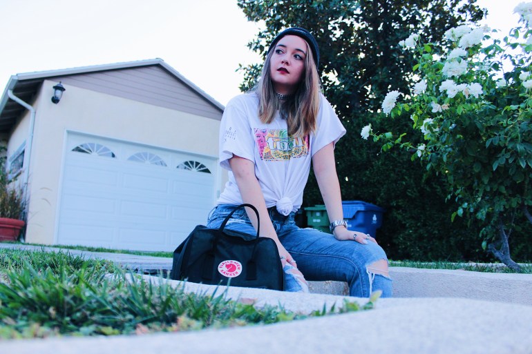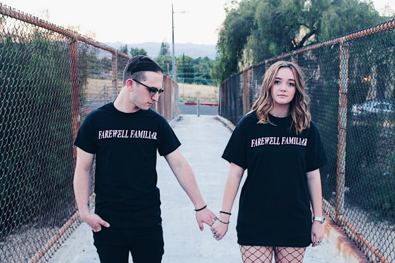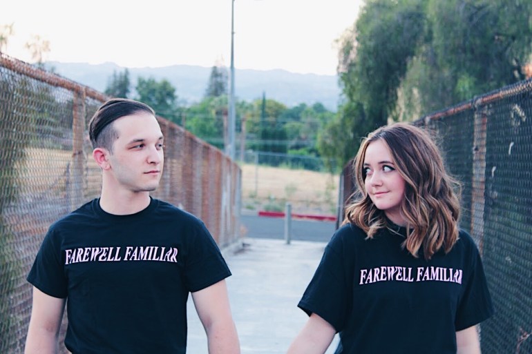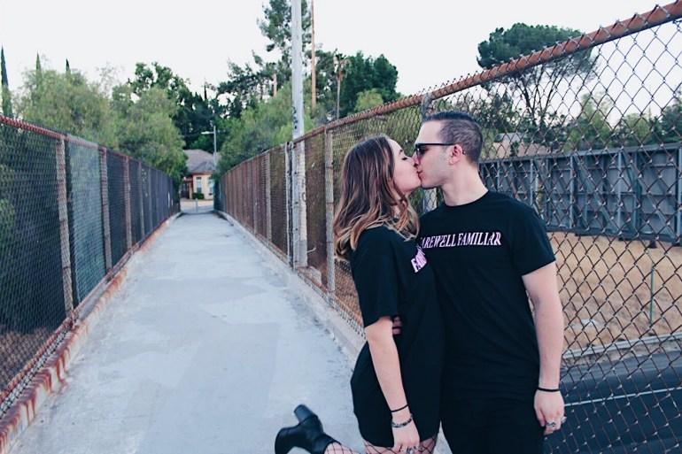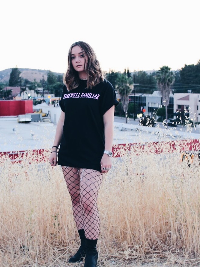 Today, I’ve styled two of Farewell Familiar’s merch tees! Farewell Familiar is band consisting of my brother,Tony and two friends, Zach and Tjay. If you haven’t checked them out yet, you’re missing out. First, I paired the grey tee with light wash ripped jeans and Doc Martens. This is exactly what I wore literally every day in high school haha. I still love the simplicity and edge of just a band tee, jeans, and boots. It’s a no-brainer, and this awesome graphic tee was designed by our good friend Taylor Bray. It’s definitely a conversation starter. The next shirt I decided to wear with high waisted jean shorts that I made, fishnets, and a taller ankle boot with a comfortable heel. In the photos, I wore a size medium of the black tee, but I actually own a large so it is more comfortable as a dress. I like wearing jean shorts though, just in case I feel like tucking it in instead! Max is a simple man, and wore both tees with black skinny jeans and his Doc Marten Lites: his uniform. For guys especially, it’s always nice to have staples that look good with practically anything. All you need is a good pair of jeans, boots, and some every day accessories. I personally love the big silver rings he wears haha. Don’t be afraid to match with your babe, especially at a show!