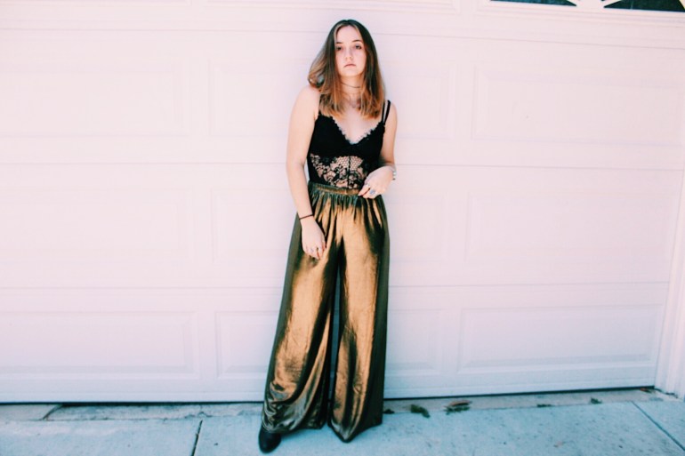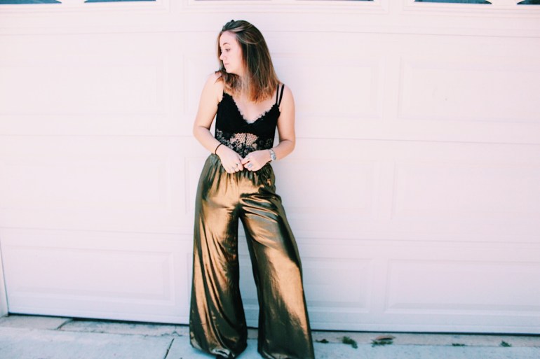 These pants pretty much speak for themselves. The best way to wear them is with a bodysuit, as they are very loose. I stacked up the jewelry, mixing metals by using silver instead of gold. I really like the contrast!