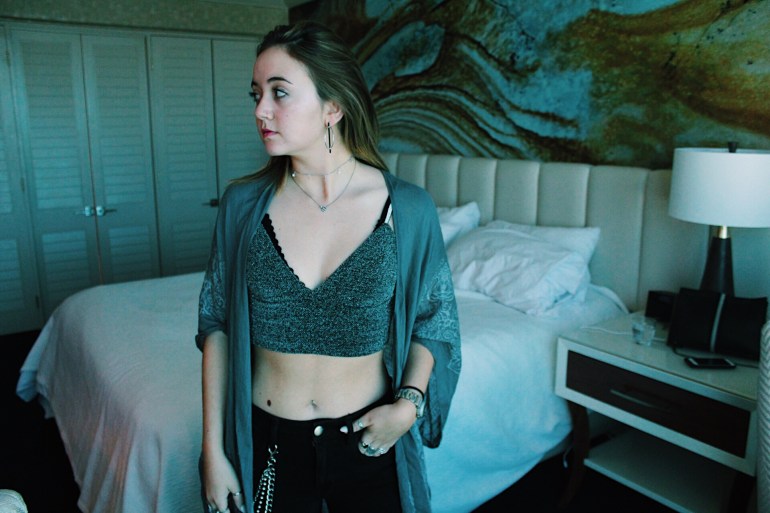 This look is a little daring, but you should wear whatever you want. I played with silver and went for this glittery crop top, a grey kimono, and silver jewelry. This was one of my favorite looks from the trip. Wear whatever you want, and own it.