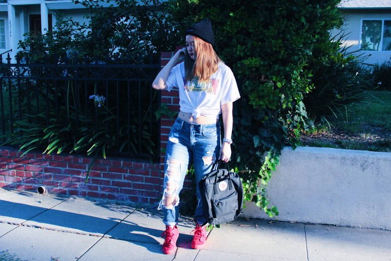 The second outfit is my favorite of the three. This is very similar to what I usually end up wearing to class. Again, these insanely comfortable and flattering jeans are from American Eagle (the “Tomgirl” jean). I paired it with a vintage Tool tee that I found at Wasteland, and my monochrome red Vans to add some more color. The beanie makes this look edgy and effortless.