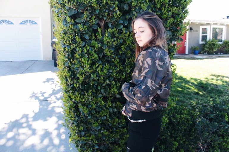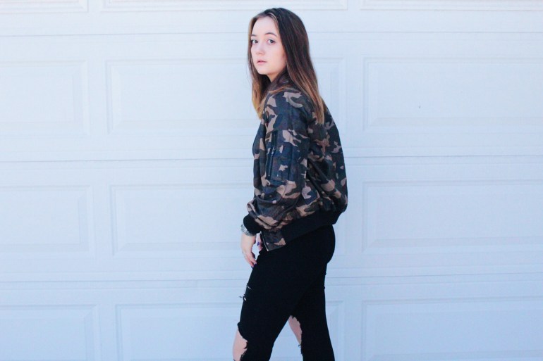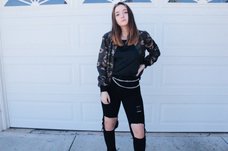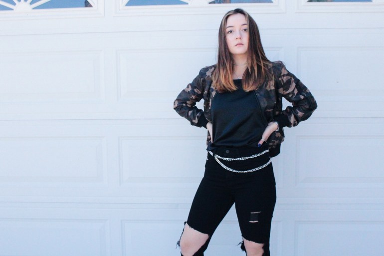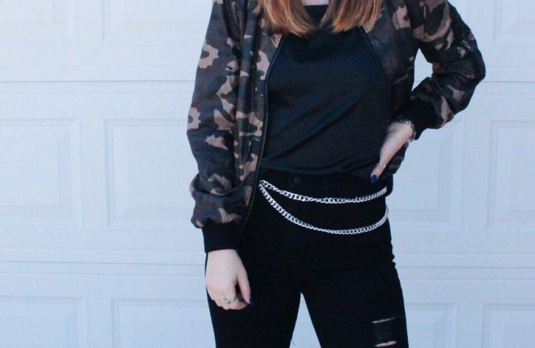 Anyone else totally loving chain belts? They add the perfect edge to any look, and they are such a throwback. I personally prefer chain belts on a higher waisted pant. These jeans were simple black, high waisted jeans from Forever 21 that I cut up myself. I paired it with this satin camisole and a camo bomber jacket. I love the mix of textures, especially the chain against the feminine satin top. I finished of the look with a few silver chokers and my trusty black platforms. This is definitely a look I would wear on a night out or to a show. I hope you enjoyed this look! Please feel free to like and share!