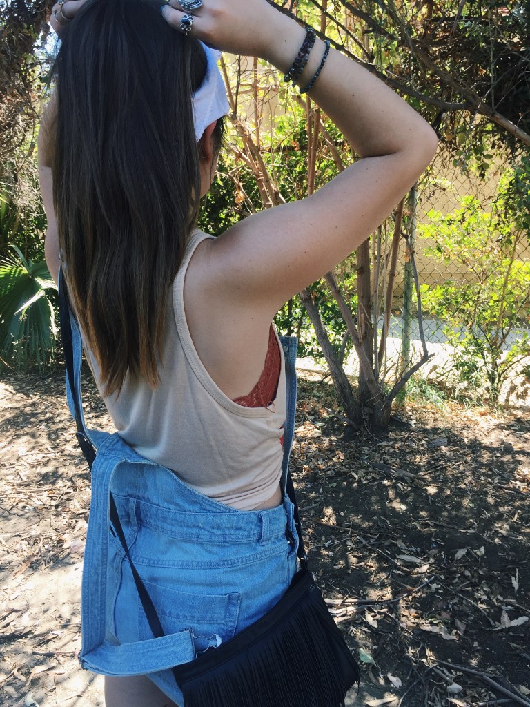 In the world of retail, we are already moving into fall. Every week I unpack more and more burgundy and olive colored clothes, but I’m not ready, and neither is the California heat. This outfit is a little bit of festival style, with a ’70s inspired touch that I always love. I fell in love with this top because it reminded me of That ’70s Show (so it’s a must) and it’s so lightweight. Also deriving from the ’70s inspiration are the fringe bag and John Lennon sunglasses. These overalls were purchased from the “Coachella Collection” at H&M, but I found very similar ones from Forever21 for the same price. These shoes were purchased at Love Story, a local boutique in LA, and I’ve searched far and wide for a similar alternative. I will continue looking as I couldn’t find a great look-a-like, but these serve as a perfect dupe for Balenciaga’s Ceinture Ankle Boot.
